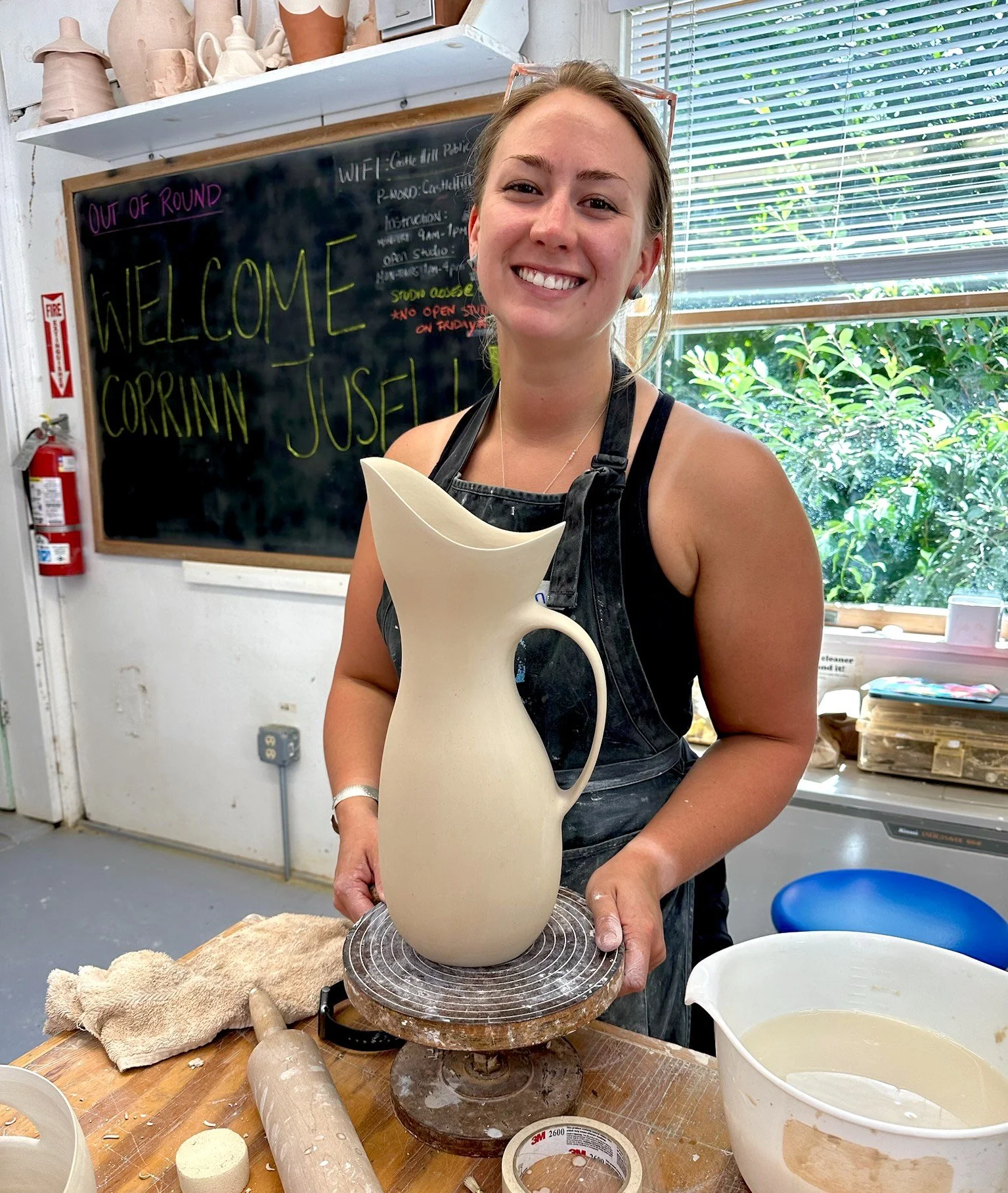 Corrinn Jusell is a practicing ceramic artist working in porcelain functional wares based in New Bedford Ma. Jusell received her Bachelors in fine arts and design from UMass Dartmouth in 2018 and has been teaching in a variety of art centers for the last 7 years. In that time she also worked as a production potter for Jill Rosenwald a ceramic design in Boston where she honed in her throwing skills.