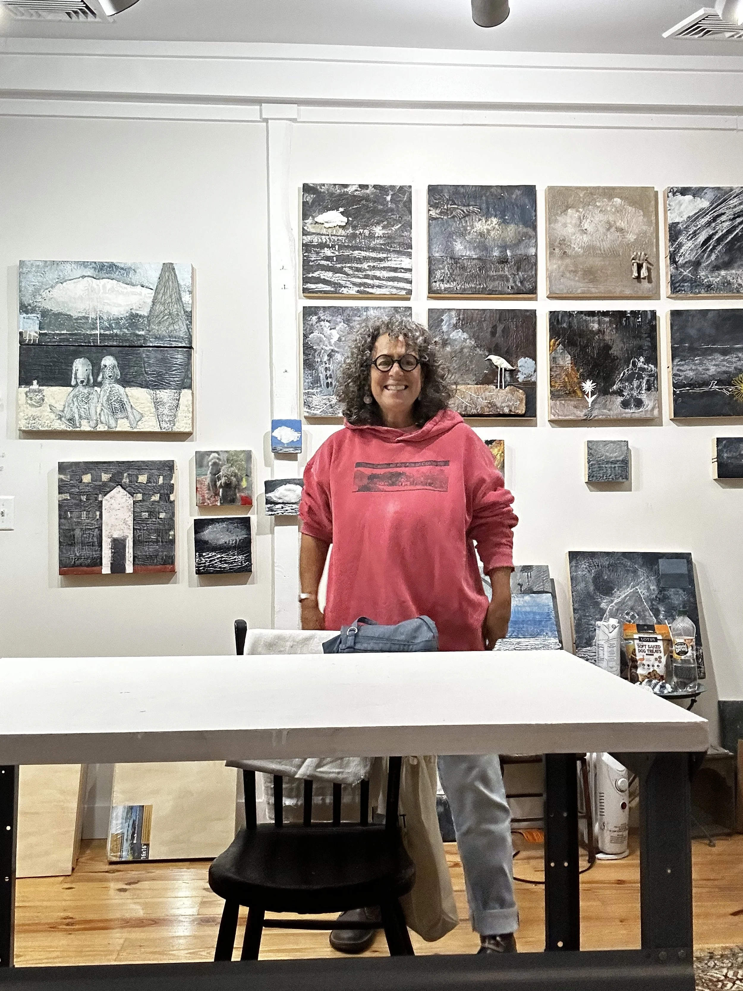 Cherie Mittenthal, Executive Director of Truro Center for the Arts, and Producer of the International Encaustic Conference. She’s been working predominately in wax or encaustic paint while integrating tar, marble dust, pigment sticks, dry materials, graphite, collage and miscellaneous mediums. She has her MFA from the State University of New York at Purchase and her BFA from the Hartford Art School at the University of Hartford. She’s the Executive Artistic Director of Truro Center for the Arts at Castle Hill since 2002. She serves on the board of Campus Provincetown, Provincetown Cultural Council, OCARC - the Outer Cape Artist Residency Coalition and is partners with Highlands Center & the National Seashore for the only Wood-Fired Kiln on Cape Cod. She won the 2019 Artist Fellowship award from the Arts Foundation of Cape Cod.